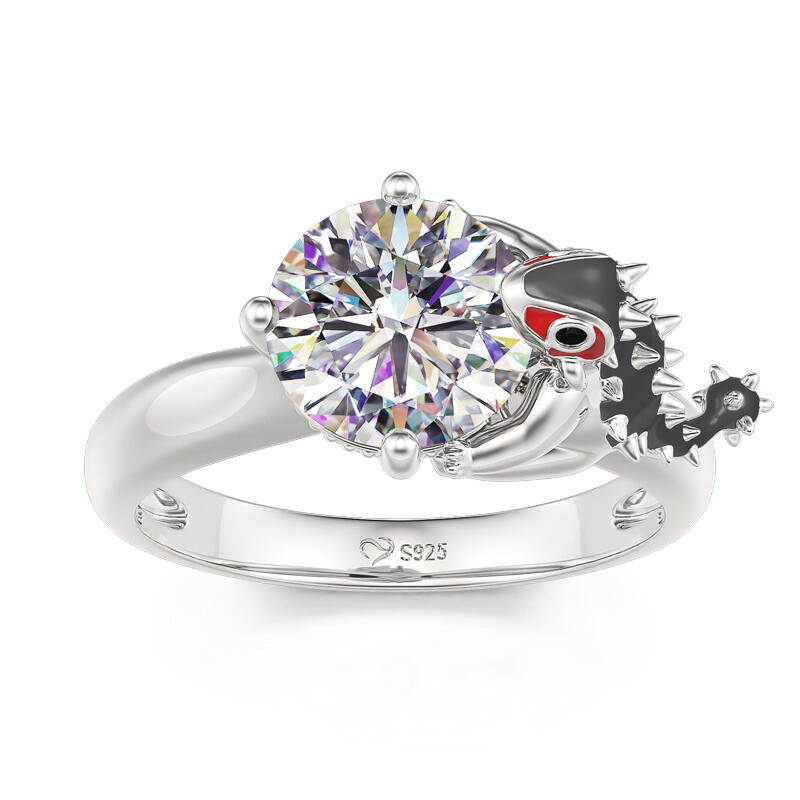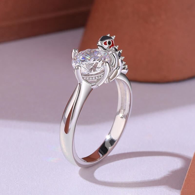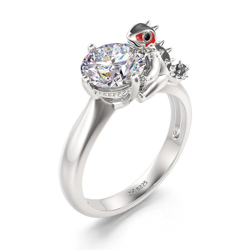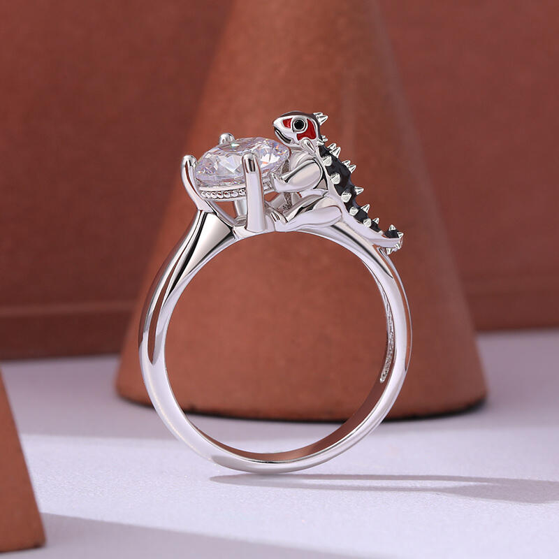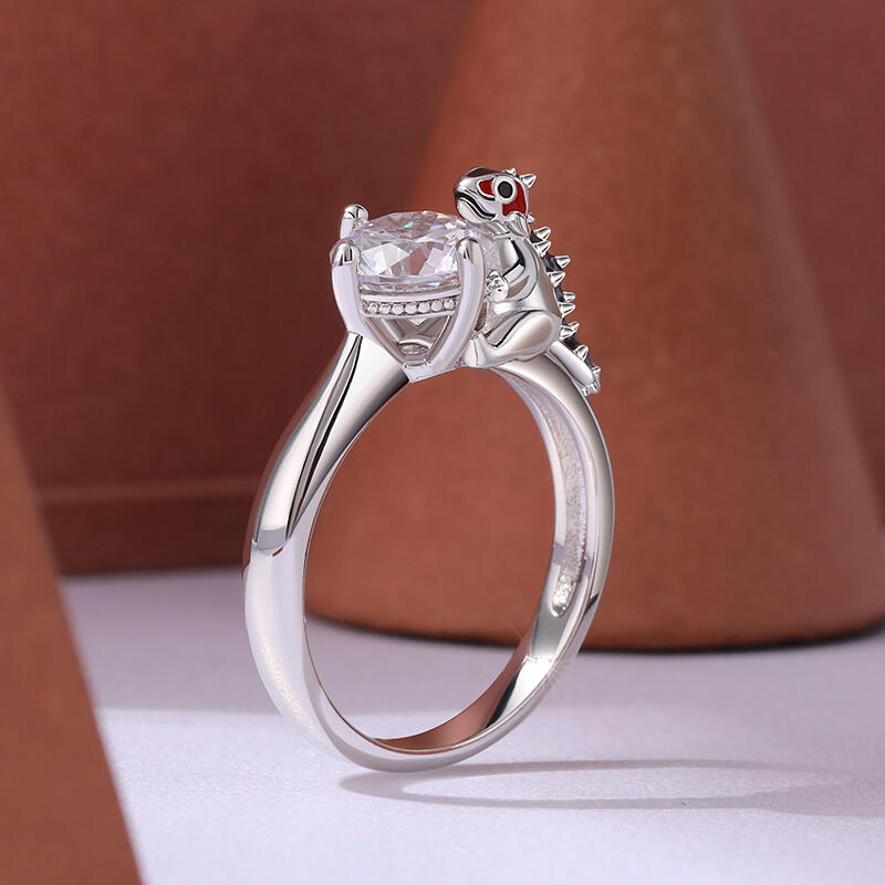 Jeulia Hug Me "Sweet Ankylosaurus" Dinosaurus Ronde Cut Sterling Zilveren Ring