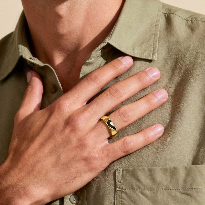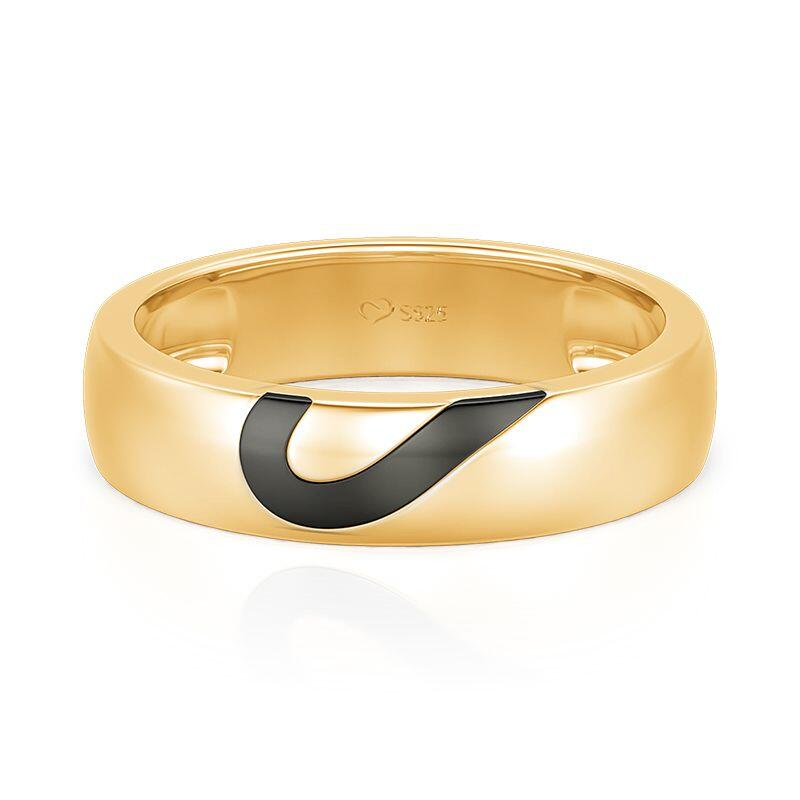 Vier de blijvende liefde met deze verfijnde herentrouwring van Jeulia, vervaardigd van geelverguld sterling zilver. Zijn strakke, eigentijdse zilhouet heeft een gedurfd, bewerkt halfhart-detalel in contrasterend zwart emaille, dat moderne randigheid balanseert met tijdloze symboliek. Ontworpen voor dagelijks comfort en duurzaamheid, biedt deze gladde trouwring een verfijnde afwerking die zowel casual als formele stijlen aanvult.