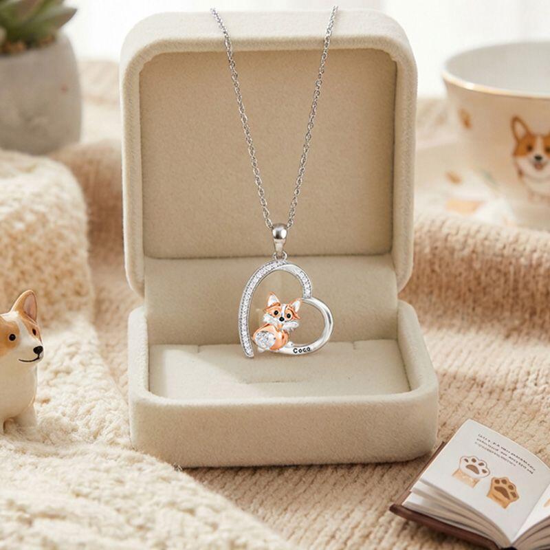 Jeulia Petland Gepersonaliseerde Gegraveerde Corgi Hart Ketting